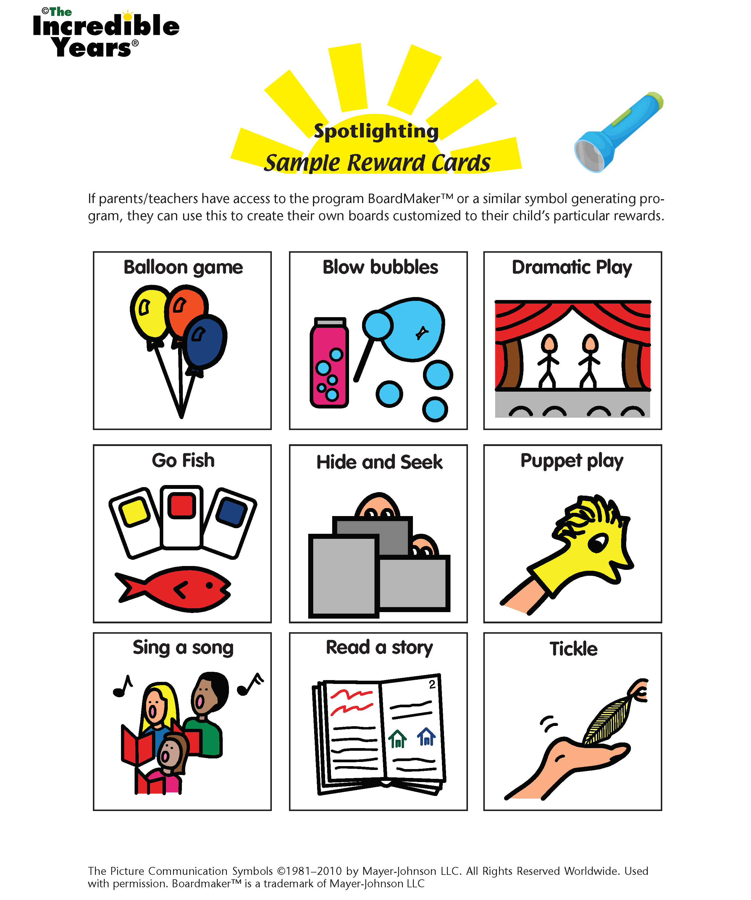 Hot Tips for using the “Getting into Your Child’s Attention Spotlight” Poster: The Incredible Years Autism Programs for teachers and parents emphasizes the importance of getting into the child’s spotlight. This metaphor means that the teacher or parent strives to enter the child’s world view, or spotlight of attention, by joining their preferences in games, following their lead in play and preferred activities. It is important to do this even when the child’s spotlight of activity may seem unconventional, repetitive, and narrow. Adults can get into a child’s spotlight by imitating what the child is doing in play, by repeating their actions, using gestures, sounds, and words, or by engaging in physical games or songs the child enjoys. When teachers and parents do this, they will capture their child’s attention and interest and the social interaction will become as or more interesting than the child’s normal repetitive play. This spotlight approach will eventually result in the child being more likely to tune into others, watch them and want to be with the person who has entered their spotlight. As children become more interested in others, there will be more opportunities for them to observe and learn from the behaviors that others are modeling. The goal is to promote the child’s social interactions and interest in communicating with others. Once the child feels safe including an adult in his spotlight, parents and teachers can expand the spotlight to include new ways of playing, helping noticing what peers are doing, including them in the play, and helping them learn from the modeling or imitating actions or words of others. Download our Hot Tips for using the “Getting into Your Child’s Attention Spotlight” Poster.
