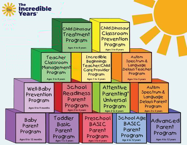 New IY programs have been developed to address younger age groups. For example, IY Attentive Parent Prevention program for children ages 2-5 years, the Autism Parent and Teacher Programs for children with autism and language delays ages 2-5 years, and Incredible Beginnings Program for day care providers and teachers of children 1-5 years. The most recent waves of RCT studies with these programs are showing promising effects.